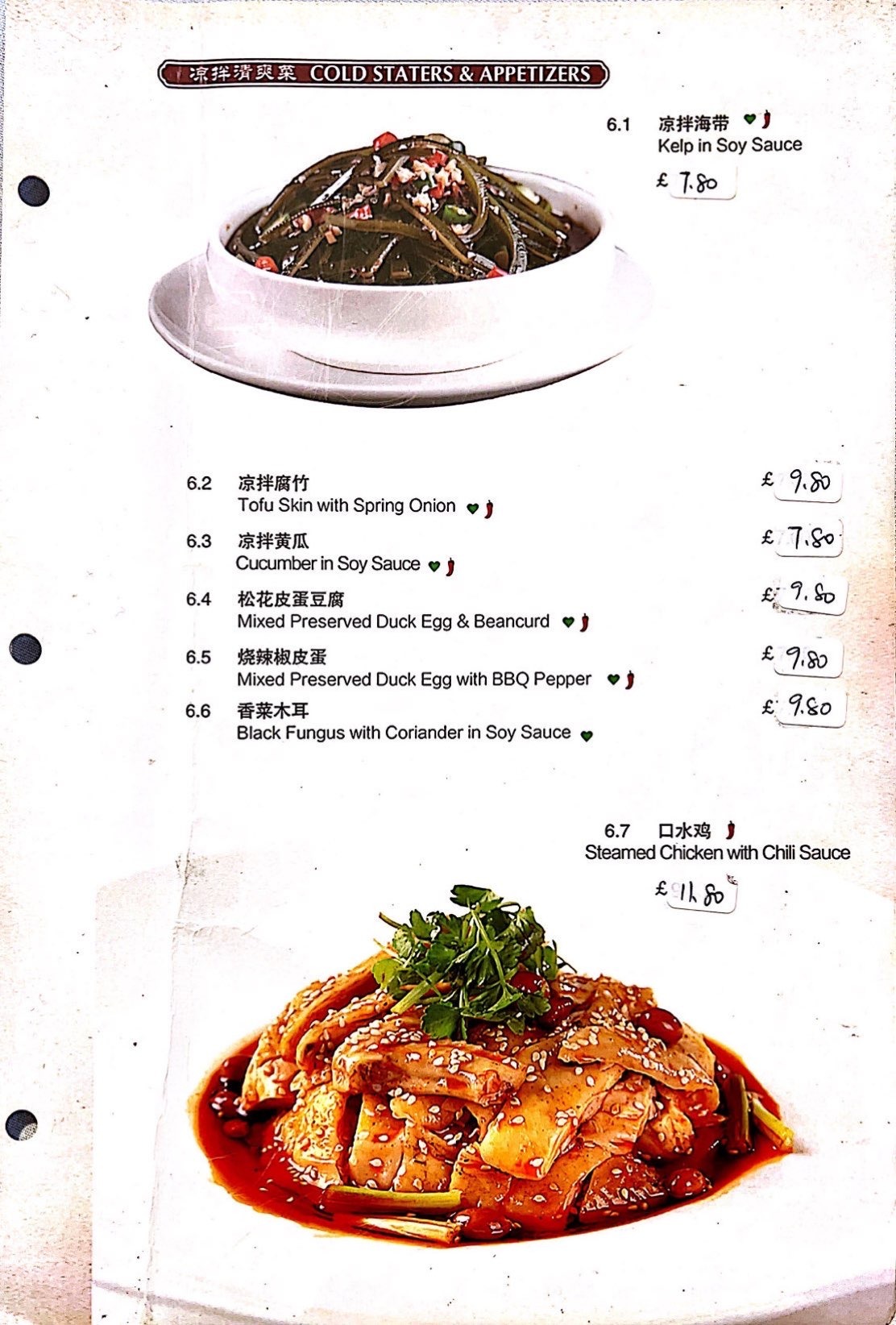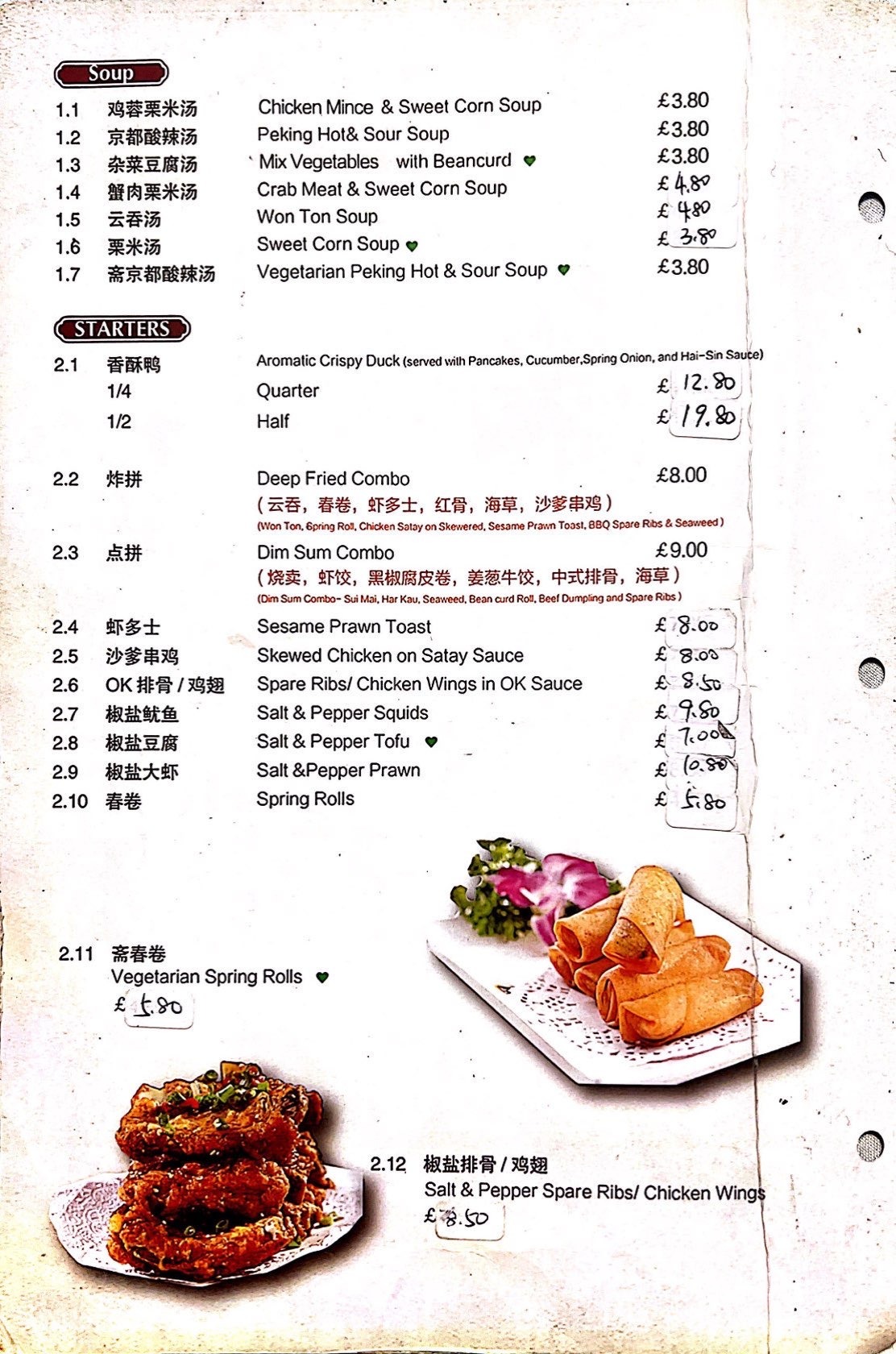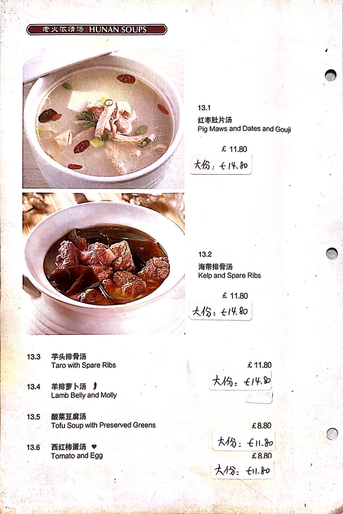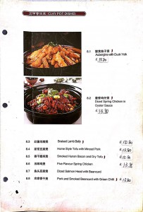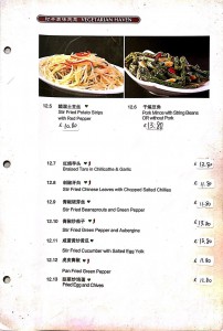 A La Carte Menu